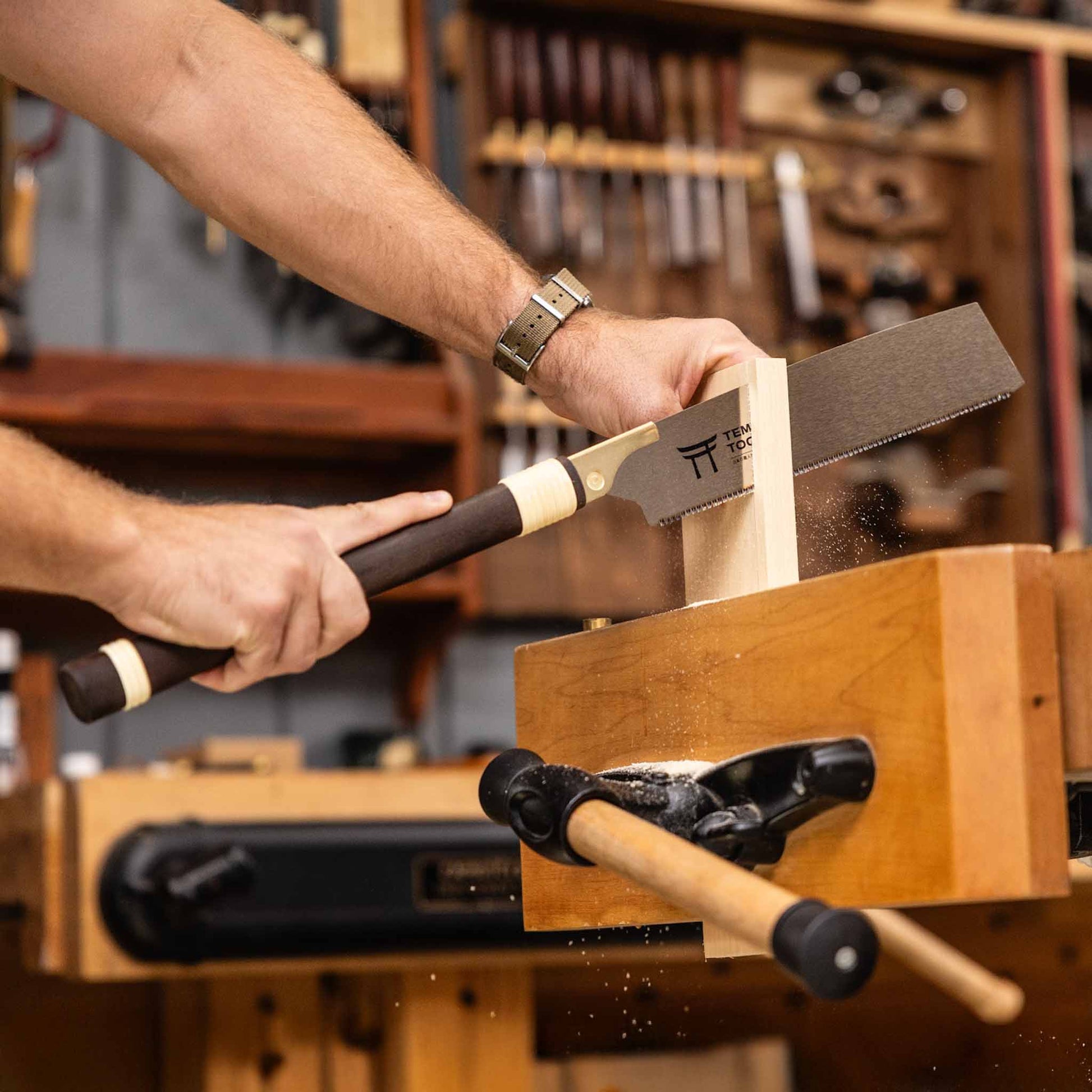 The Kataba is a single-edge general purpose saw with universal teeth that have a combination of crosscut and rip-cut teeth. A longer saw at 265mm long with medium aggressive TPI making it ideal for general purpose work, dimensioning stock, and medium to large joinery such as Tenons.
